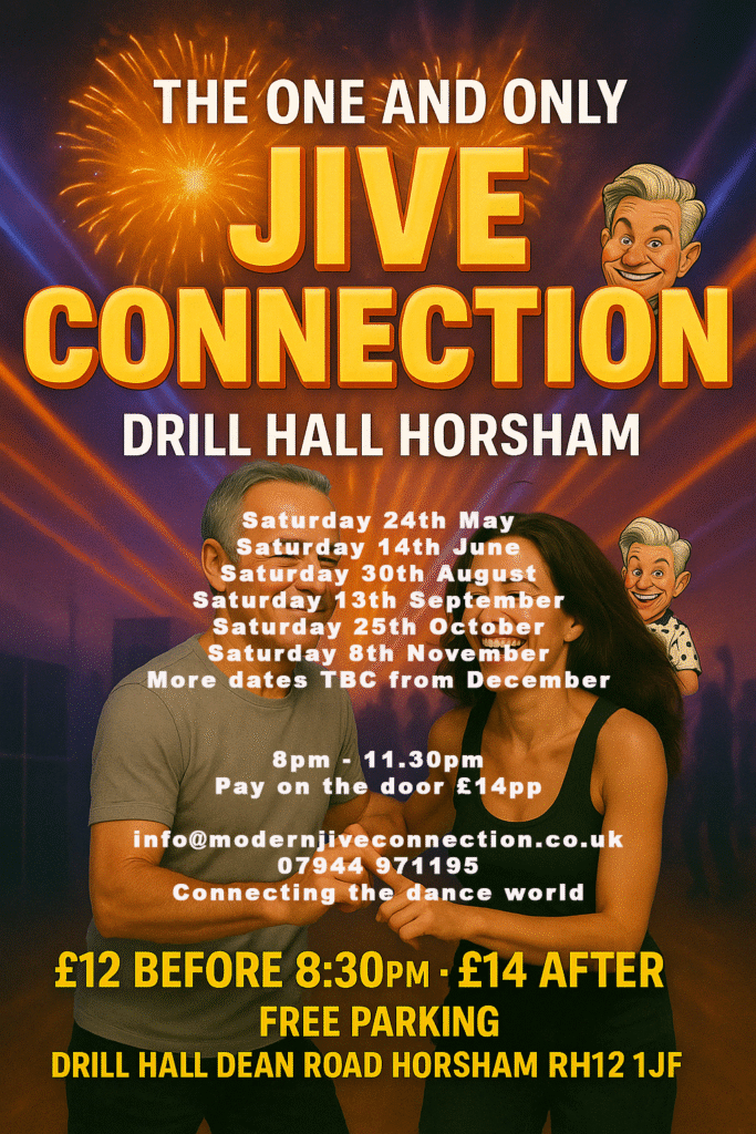 Join us for a spectacular night of Modern Jive dancing at The Drill Hall, Horsham — brought to you by the experienced team behind LeRoc Surrey & MJRoc Weekenders, proudly celebrating 30 years of dance excellence from 1995 to 2025! 🎉